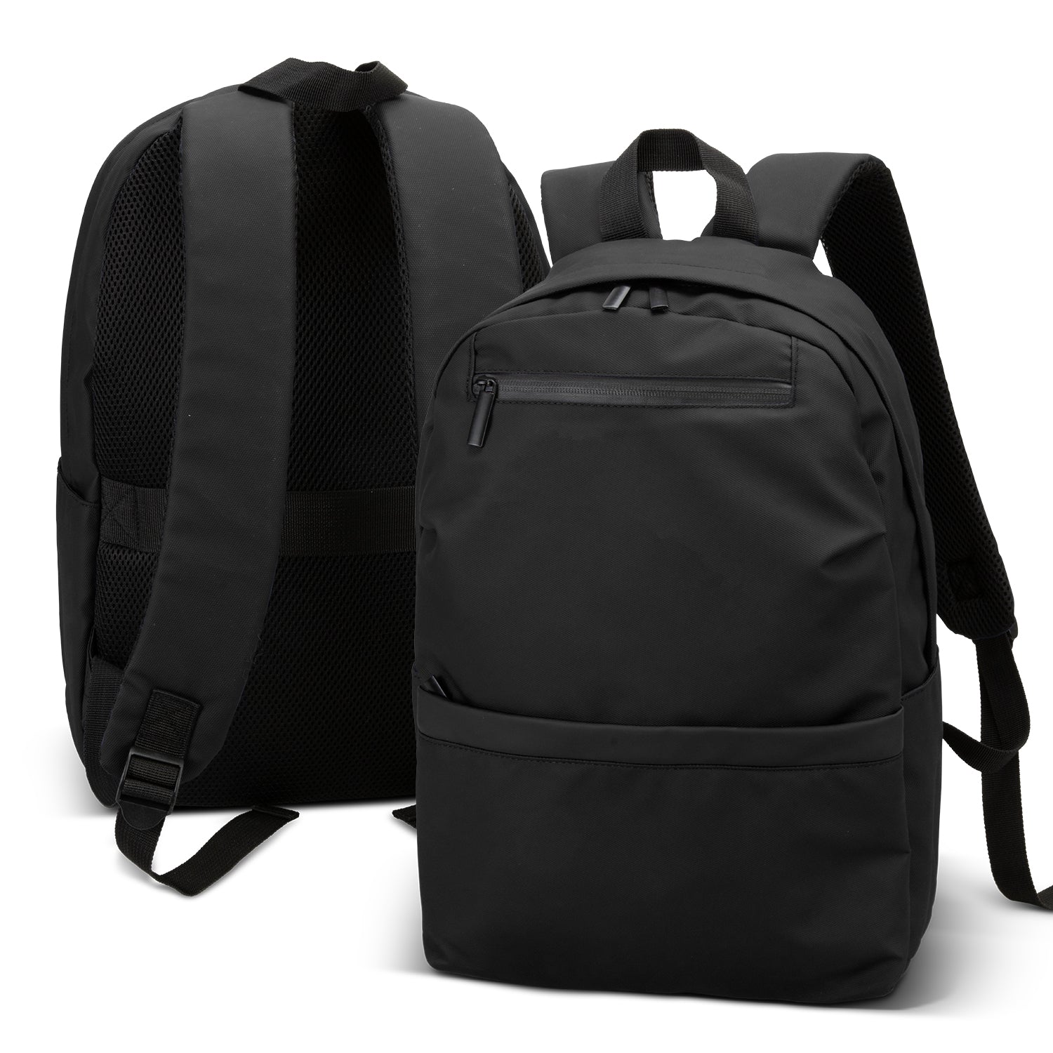 The Alumni is a practical, everyday backpack. Made from durable 600D polyester with a soft-touch PU coating, it features a padded internal device sleeve that securely fits laptops up to 16". In addition to the main compartment there are two external zippered pockets to help organise your belongings. The adjustable air-mesh straps are padded for comfort and the woven luggage trolley strap adds convenience when travelling.