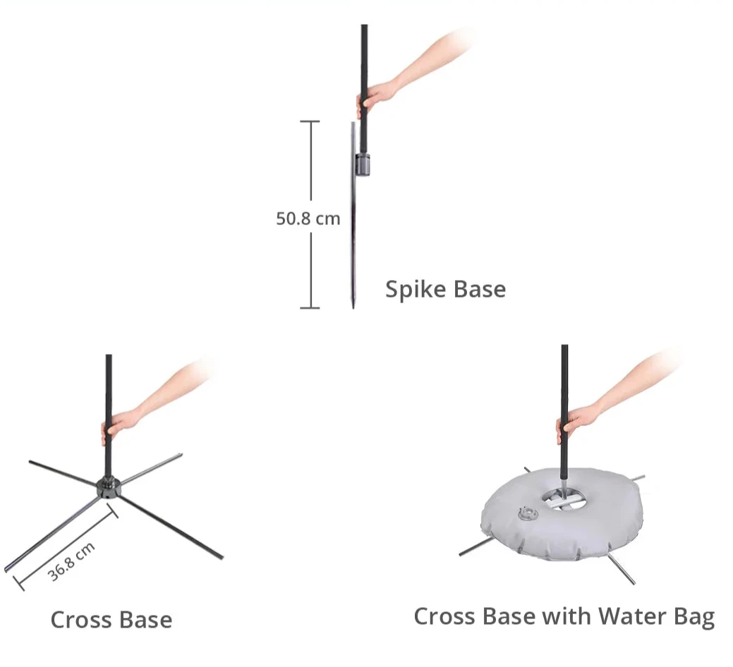 Choose from single or double-sided prints; single-sided offers correct readability on one side with a mirrored back, while double-sided ensures your message is consistently clear from any direction. Installing your blade flags is straightforward with its clever design, featuring a black pole pocket on the left for quick assembly. Choose between a spike or cross base for a hassle-free setup, ready for immediate display at your events.