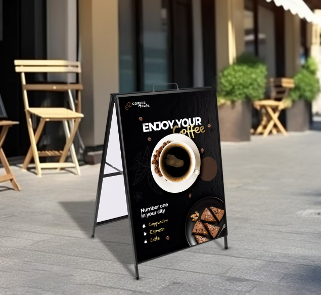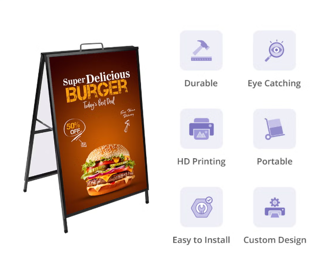 Step up your marketing with our high-quality, A frame sidewalk signs, perfect for boosting your visibility and attracting more attention. Order now and make a powerful marketing statement!
