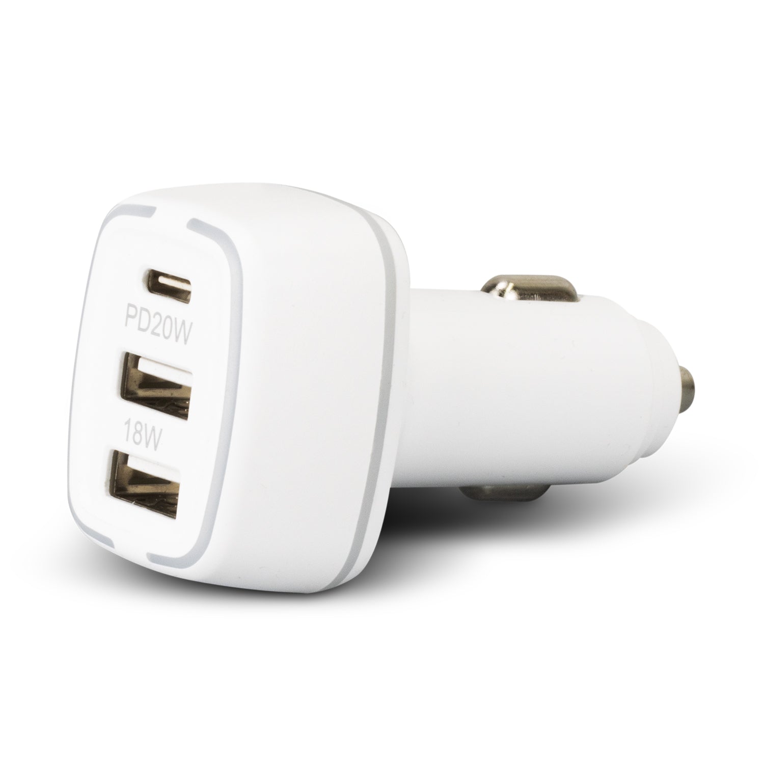 Charge multiple devices simultaneously with this fast car charger, perfect for long commutes and road trips. The charger features three charging ports two USB-A ports and a Type-C port.
