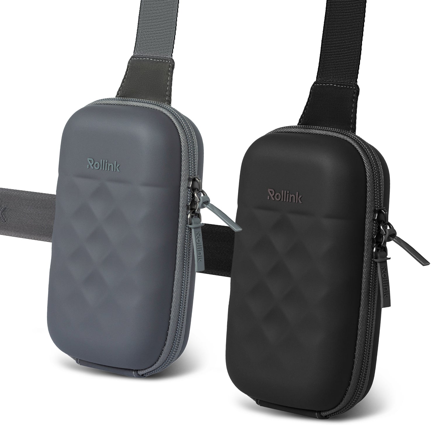 The crossbody bag can be worn over the shoulder or as a trendy crossbody bag, keeping your essentials easily accessible. Its adjustable strap allows you to set the length to your preference. Designed for everyday use, whether you're in the city, traveling, or on adventures, this bag combines practicality with style. Made from EVA rigid foam with a washable polyester inner lining, it is available in two fashionable colours that would complement any outfit. The Rollink Mini Bag Go will fit mobile devices with up to 6.9 inch screens.